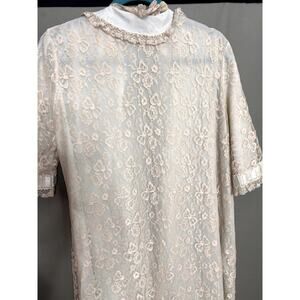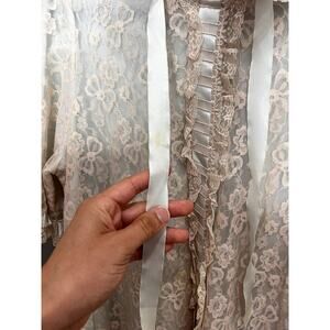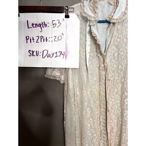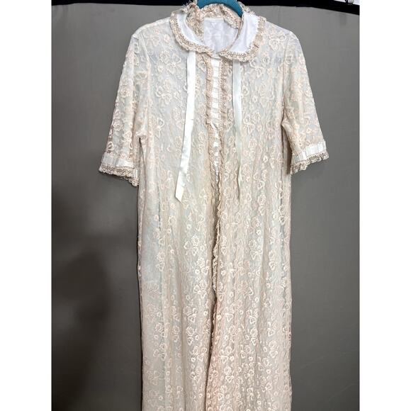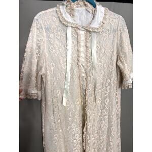 Vintage 60s Odette Barsa Lace Overlay Robe Dressing Gown M/L Fairy Coquette FLAW