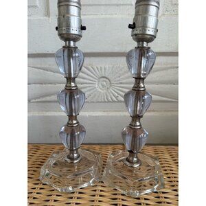 Vintage 60's Pair Small Table Lamps Purple Stacked Lucite Clear Glass