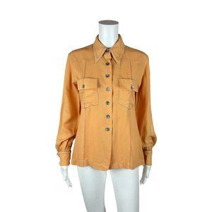 Vintage 60s Peach Blouse Women's Medium Gray Dagger Collar Long Sleeve Button Do
