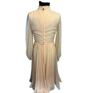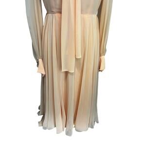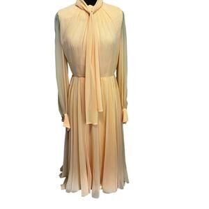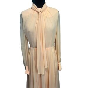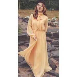 Vintage 60s Peach Orange Formal Sheer Chiffon Maxi Party Dress Bow Small Medium