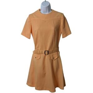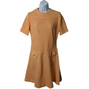 Vintage 60's Peach Shift Dress Drop Waist Short Sleeve Fortrel Textured Poly