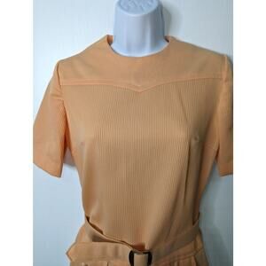 Vintage 60's Peach Shift Dress Drop Waist Short Sleeve Fortrel Textured Polyester