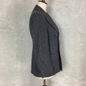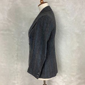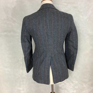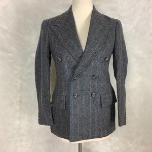 Vintage 60s Peak Collar Double Breasted Gray, Red & Blue Pinstripe Wool Blazer S