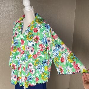 Vintage 60s Peggy Lou Floral Print Flutter Sleeve Blouse.