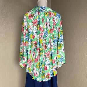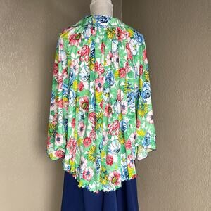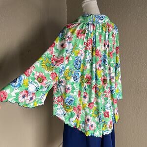 Vintage 60s Peggy Lou Large Print Floral Flutter Sleeve Blouse Top