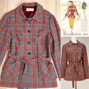 Vintage 60s Pendleton 49er Lightweight Wool Plaid Shacket & Detachable Belt Lrg