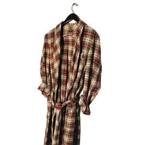 This vintage Pendleton checkered plaid robe jacket is a stylish and unique piece that is perfect for any occasion. It is made of a soft and comfortable wool fabric and features a classic checkered plaid design in red and white. The jacket also has two pockets and a relaxed fit.