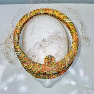 Vintage Crown Hat Orange Paisley Net Head Band Church Wedding Costume Theatre