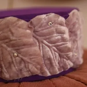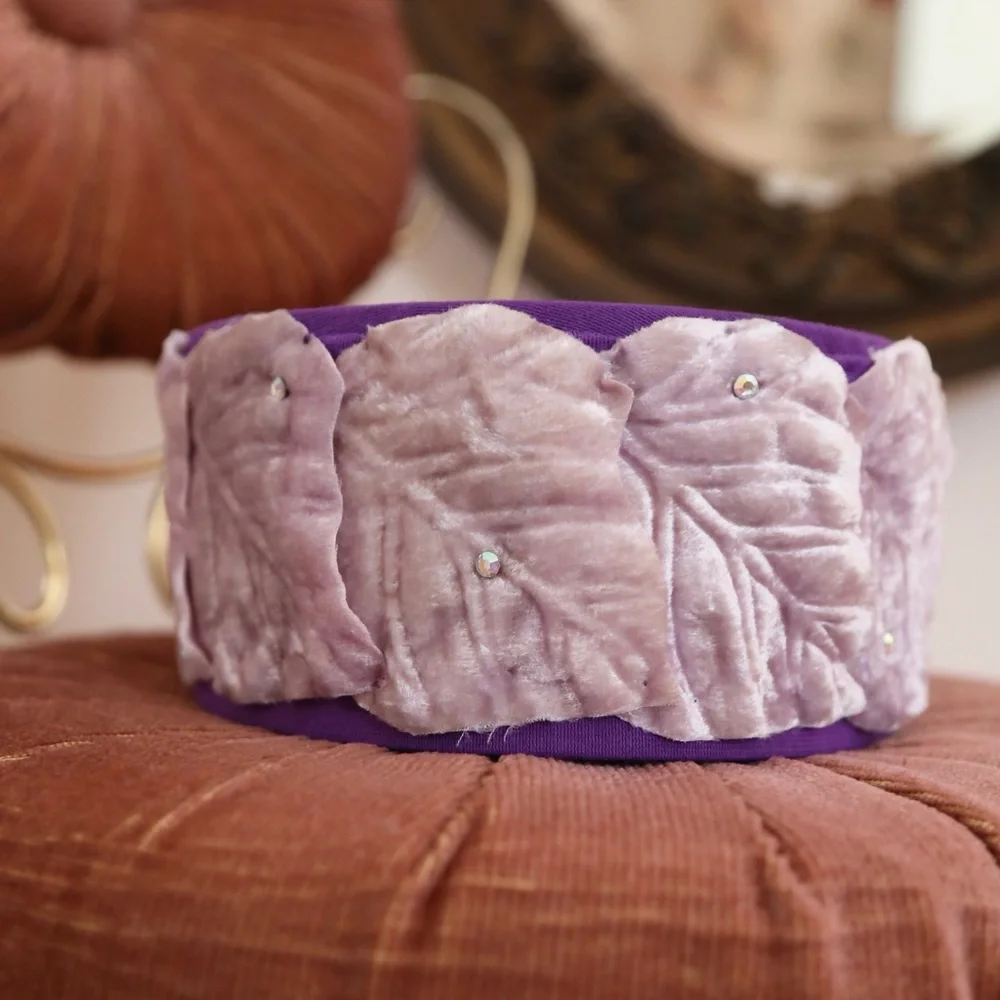 Vintage 60s Pillbox Hat Purple Lavender Velvet Rhinestone Leaves