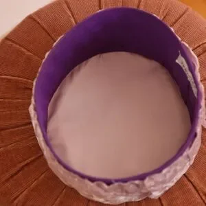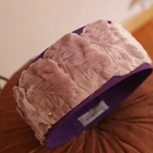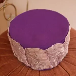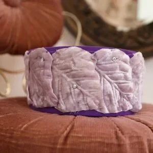 Incredible vintage 1960s pillbox hat ~ purple with lavender velvet leaves and rhinestones with satin lining. Tag inside featuring the owner’s name 💜 some of the rhinestones are missing, otherwise great vintage condition. 7” across, 3.5” tall.