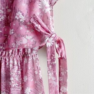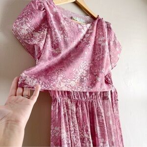 Vintage 60’s Pink Floral Blouson Midi Dress Modern Size 6 (see measurements below)