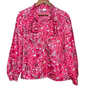 Vintage 60s Pink Floral Button Up Long Sleeve Dress Shirt with Neck Tie Size 14