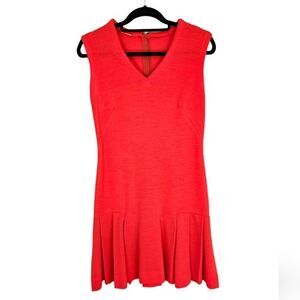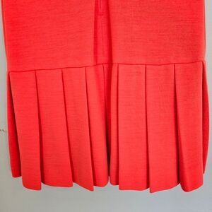 Vintage '60s Pleated Drop Waist Coral Sleeveless V-Neck Wool Blend Dress with Matching Scarf Size 6