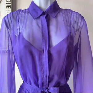 Vintage 60s Purple Chiffon Sheer Long Sleeve Pintuck Dress Size 12