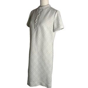 Vintage 60s R&K Knits Mod Sheath Dress M White Metallic Silver Rhinestones Zip