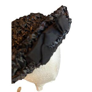 This classic vintage black woven straw hat features a sophisticated design, complete with a bow detail. Its wide brim ensures a standout, polished look.
