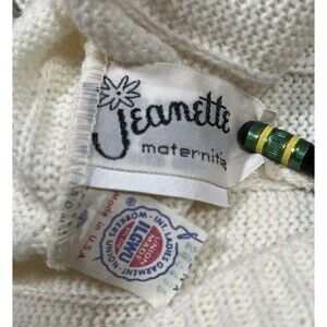Exceptionally rare vintage 1960s Saks Fifth Avenue maternity sweater in a soft ivory hue, size Small. This deadstock piece is new with original tags, featuring a mock turtleneck and a back zipper for a classic, elegant look. Union-made in the USA with a Kimball tag still attached, which pre-dates barcodes and adds unique historical appeal. Perfect for collectors of rare vintage clothing or anyone with a love for timeless maternity fashion. A true find for vintage enthusiasts! See pictures for details.