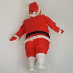 Vintage 60s Santa Claus Figure Felt Suit Plastic 10" White Boots Gloves Japan