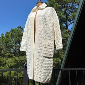 Vintage 60s Scalloped Collar Chunky Knit Long Cardigan Duster Sweater Robe