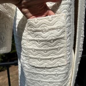 Vintage 60s Scalloped Collar Chunky Knit Long Cardigan Duster Sweater Robe M L