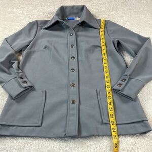 Vintage 60s Sears button down long sleeved grey polyester jacket, size 12