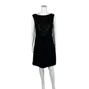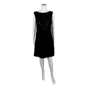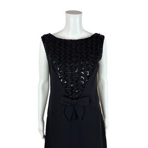 Vintage 60s Sequin Dress Women's Medium Black Mod Mini Cocktail Party Shift