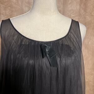 Vintage 60s Shadowline Black Sheer Sleeveless Midi Babydoll Lingerie Slip Dress