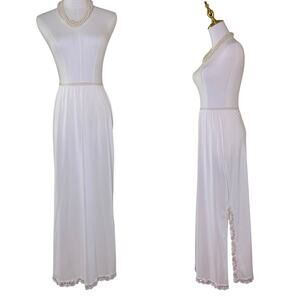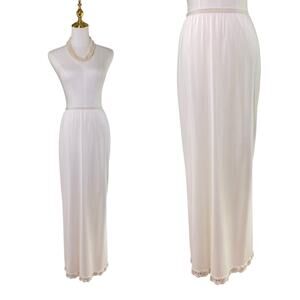 Vintage 60s Shadowline Bridal White Nylon Lace Trim Maxi Half Slip Skirt Size S