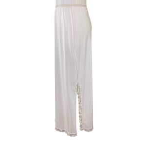 Vintage 60s Shadowline Bridal White Nylon Maxi Half Slip Skirt with Beautiful Lace Trimmed 16" Side Slit and Hem, Elastic Waist with Pillow Tab