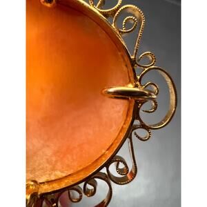 Vintage 60s Shell Cameo Brooch Pendant – 12K Gold Filled Filigree Frame