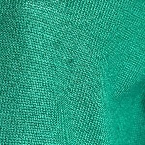 Chic emerald green turtleneck sweater with semi peasant long sleeves and ribbed cuffs, back neck zipper. No size tag. Between small and medium. Made from 100% acrylic in Taiwan. Very classic. Measures 19” P2P. Minor pilling, one small snag as shown in photo, may be fixable. Very good condition.