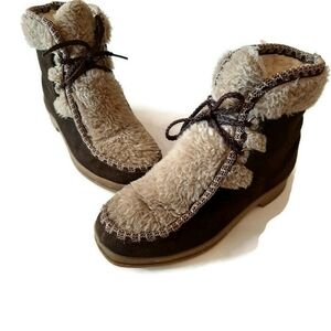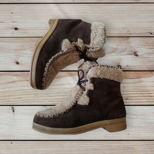 Vintage 60s Sherpa and Brown suede warm winter lace up booties. Size 7