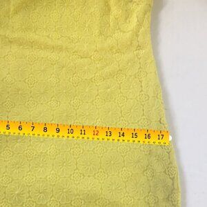 Vintage 60s Shift Dress Size 12 Yellow Floral Lace Overlay Sleeveless