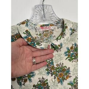 Vintage 60's Shirtmaker green Floral Cotton Blouse Peter Pan Collar USA Small