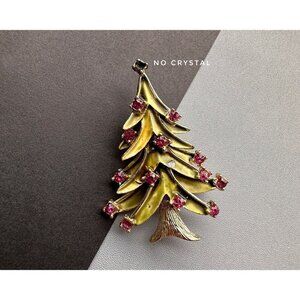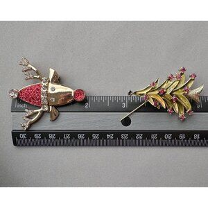 Vintage 60s Signed OPIM GOLDTONE Christmas Tree & Reindeer Rhinestone Pin Brooch