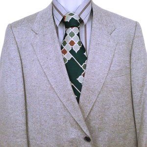 Vintage 60s Mid-Century Suit Jacket Blazer Sport Coat, Bel-Air Clothes made in USA, men's - 44R, Lined Tailored Fitted, Marled Flecked Woven Silk with slubs multicolor fibers in a solid pattern, double-button closure, 4-Buttons cuff, 3-inner pockets, 3-outer pockets with flaps, 3.75" wide classic notched lapel, single vent, Dry Clean Silk in light neutral shades of silvery grey with multicolor flecks. In excellent pre-owned* condition with no outwardly visible flaws - button replaced/repaired at cuff - see pics. Gentleman Grandpa Dad Chic Classic Towne Country Squire Vanity Fair Runway On Trend Preppy Academia Career Business Casual Coastal Suiting Street Mod Retro