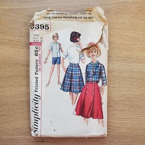Vintage 60s Simplicity 5395 blouse, shorts, and wrap-around skirt sewing pattern. Published in 1964.