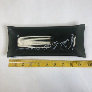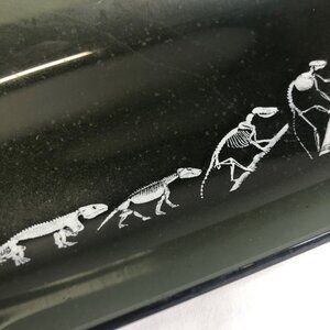 Vintage 60's Skeleton Lizard Man Evolution 9.25" x 3.75" Smoked Art Glass Tray