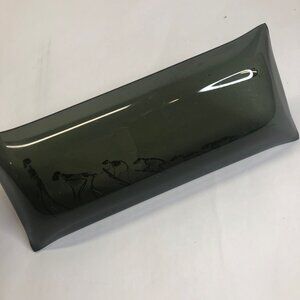 Vintage 60's Skeleton Lizard Man Evolution 9.25" x 3.75" Smoked Art Glass Tray. See photos for overall condition and description of this item. Smoke free home.