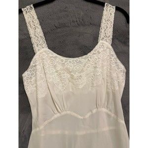 Vintage 60s Slip Sz 34 M White Rayon Nylon Crepe Bias Cut Lace Trim Back Magic