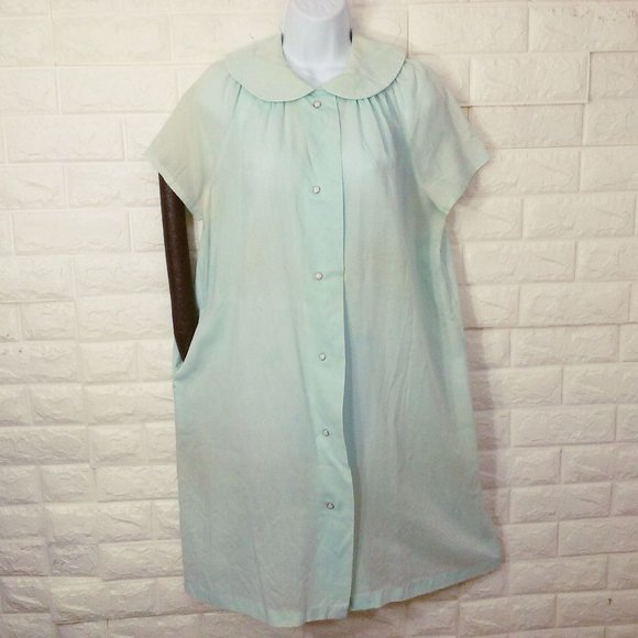 Vintage 60s Smart Time Dressing Gown Robe House Dress -12 Pocket Pearl Snaps