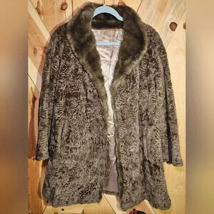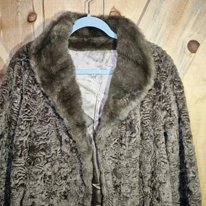 Vintage 60s Sportowne Coat Brown Faux Fur Button Closure Union Made In USA 8 Med