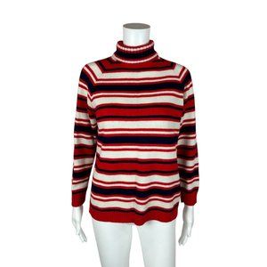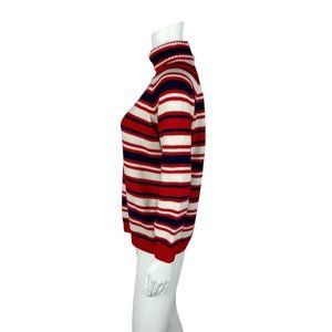 Vintage 60s Striped Sweater Mod Turtleneck Women's Neck Zip Pullover