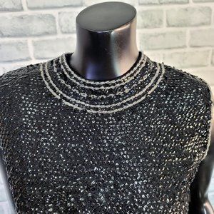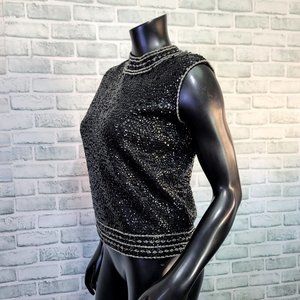 Vintage 60s Sweater Bee by Banff Womens S Black Sequin Cocktail Evening Tank