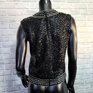 Vintage 60s Sweater Bee by Banff Womens S Black Sequin Cocktail Evening Tank. Metal Zip Back Closure. Scalloped Beaded Trim on armholes. Fully lined