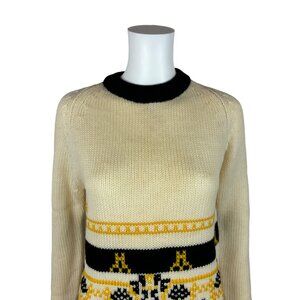 Vintage 60s Sweater Women's Medium Nordic Yellow Pattern Mod Pullover