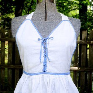 Vintage 60s 'Swiss Miss' Style White Cotton Full Bib Apron Blue Trim Cottagecore