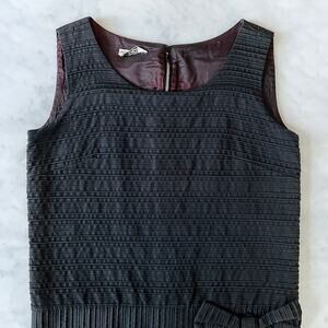 Vintage 60s Textured Black Sleeveless Shift Dress with Big Bow Detail / Small