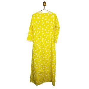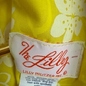 Rare and lovely Jackie O., Palm Beach-era 1960's Lilly Pulitzer when the brand was simply known as "The Lilly!" Yellow, floral-print, poly-cotton gown features long sleeves, white lace at neckline and sleeve trim, and back zip. Please see measurements to ensure preferred fit.