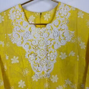 Vintage 60s 'The Lilly' Lilly Pulitzer Yellow Floral Gown Floral Lace Trim Dress